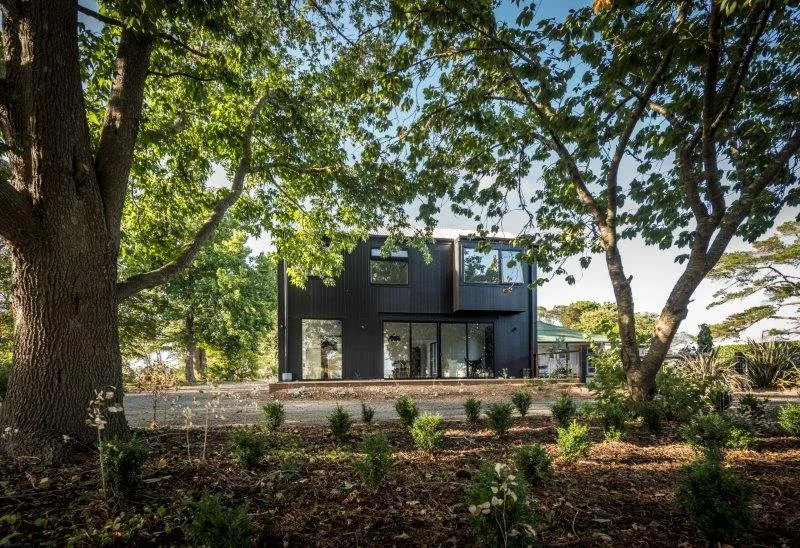 Set against a natural landscape, this contemporary home showcases open, airy interiors, warm timber flooring, and a striking kitchen at its centre. Expansive living zones and carefully considered finishes create a space that feels both elevated and inviting.
